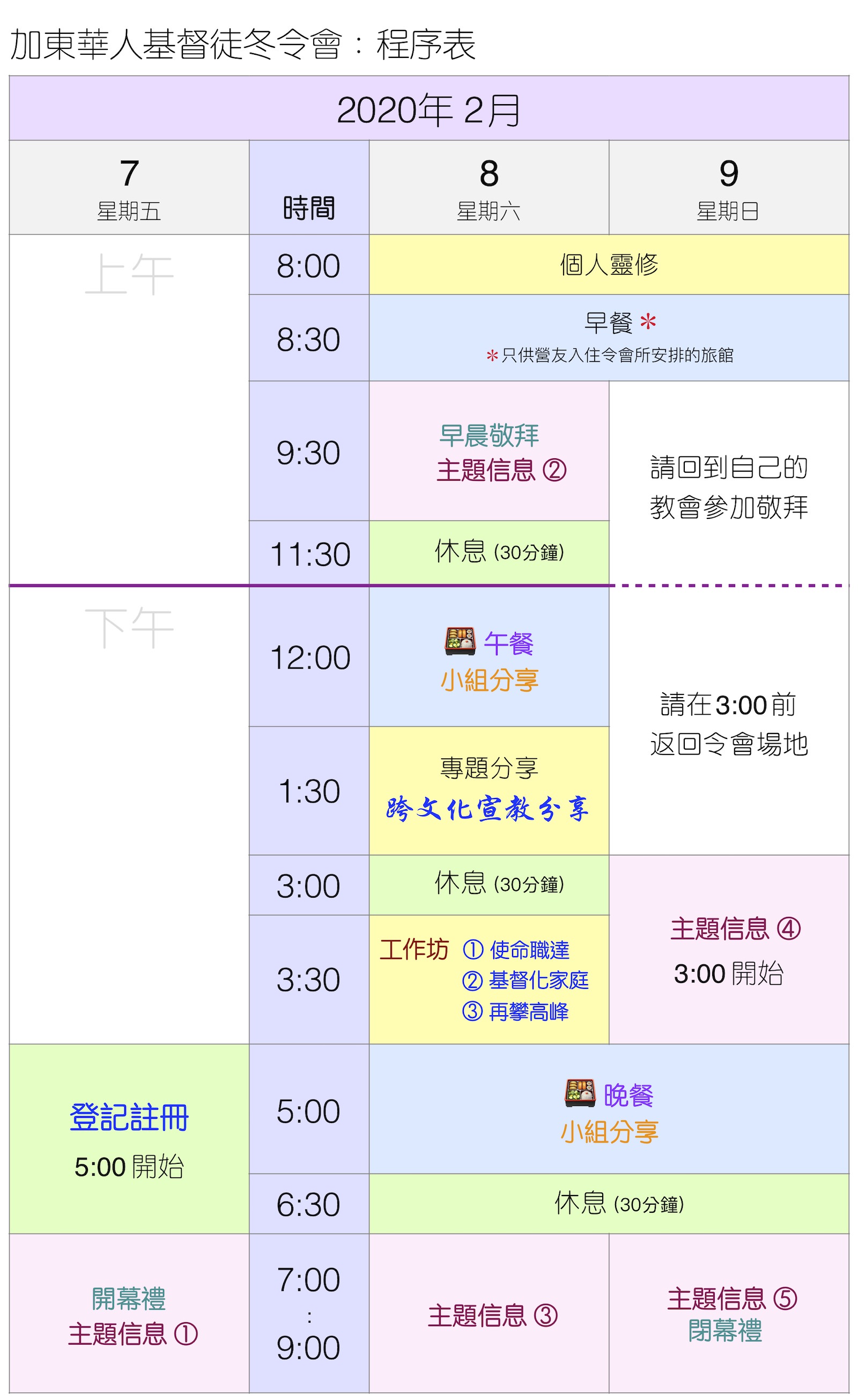| 日期 | 2月 7~9日 2020年 (星期五~日) |