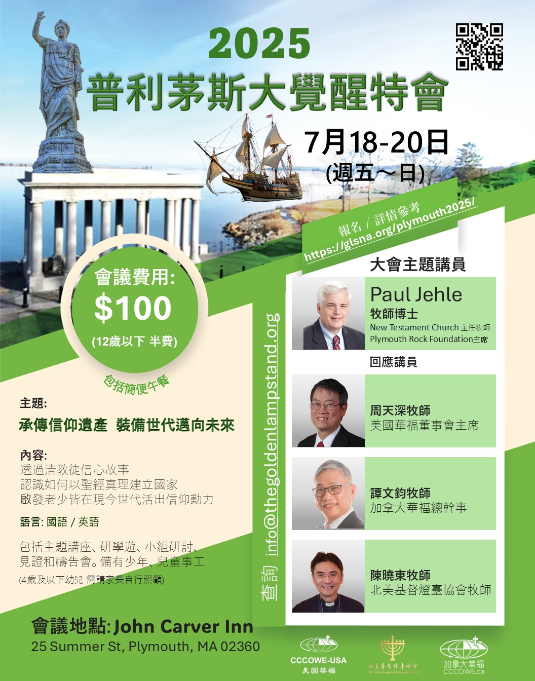 已辦聚會 感謝神賜予加拿大華福眾多志同道合的策略伙伴,得以在過往的日子,齊心協力以「扶植、創新、跨航」的理念,配合「僕人、先知、橋樑」的角色來推動加國華人教會的發展,實踐門徒導向跨文化宣教及家庭聚焦下一代事工兩策略性事工方向。以下的一些已辦聚會,一方面提供資料幫助參加者重溫,另一方面記錄華福加拿大聯區事工發展軌跡,求神使用。 2025 齊愛穆民 齊愛穆民 Next Gen Future 職場特會 Chinese Diasporas Chinese Diasporas 職場使命門徒大會 加東青年冬令會 华福卑诗省青年秋令会 华福卑诗省青年秋令会 大覺醒特會 大覺醒特會 齊愛穆民 職場特會 跨世代圓桌匯 幸福小組 華福亞省青年營 全球工作信仰日 華人散聚網络策進會議 宣教心視野 齊愛穆民 加東青年冬令會 2024 基督徒的社會責任 職場使命門徒 55+ 峰會 羅姆人異象晚會 加拿大華福之夜 IDMC 銳意門訓教會大會 Alpha Canada 普及神學講座 齊愛穆民 齊愛穆民 超越九型人格的耶穌故事 跨世代 大覺醒 Frontiers 職場特會 Frontiers 齊愛穆民 跨文化宣教國際研討會 幸福門訓 幸福門訓 齊愛穆民 Alpha Canada 泛美華福會議 齊愛穆民 培靈宣教特會 心系緬甸禱告會 齊愛穆民 幸福門訓 加東華人基督徒冬令會 全加華人基督徒青年冬令会 齊愛在加穆民 2023 幸福小組線上研習會 齊愛在加穆民 CCCOWE Canada Soirée 以色列跨文化考察團 為以色列禱告 齊愛在加穆民 美加華福峰會 為未得之民禱告 齊愛在加穆民 動盪中之恩惠 職場見証奮興大會 為未得之民禱告 宣教心視野 末世風雲 頭腦健康 身心靈健康 齊愛在加穆民 心繫萬國祈禱會 IDMC 銳意門訓教會大會 WAMSA 職場特會 大多市國語佈道會 「愛穆鄰」禱告學習會 幸福門訓體驗 齋戒月為穆斯林禱告 IDMC:學習分享會 情緒困擾與心理健康 幸福門訓:深入探討分享會 新移民教牧交流對話會 疫情後的契機 疫情後的教會形態 基督徒青年冬令会 加東華人基督徒冬令會 2022 華人基督徒 55+ 峰會 CCCOWE Canada Soirée 疫情後的教會 幸福小組:教牧領袖座談會 心系緬甸禱告會 (15) 幸福門訓研習會 幸福小組研習會 幸福小組:歡迎午餐 幸福小組:門訓奮興會 羅姆人禱告團契 (第 3 季) 國度神學研討會:已然而未然 幸福小組實踐見證分享會 心系印度祈禱會 宣讀聖經事工分享晚宴 突破, 傳承, 回饋 顧往瞻來聚焦戴德生 職場使命門徒 IDMC 銳意門訓教會大會 華人教會 TECH Conference 多倫多佈道會 羅姆人禱告團契 (第 2 季) 北美愛穆文化節 家庭事工策略與實踐研討會 受難周:聯合禱告會 IDMC:學習分享會 烏克蘭危機緊急禱告會 全加華人基督徒青年冬令会 加東華人基督徒冬令會 羅姆人禱告團契 (第 1 季) 跨越 Cross Over 2021 網上交流會:與作者對話 加拿大華福之夜 加拿大基督徒教育大會 大多市國語培靈會 家庭塑造與家庭事工 幸福小組:學習分享會 幸福小組:全球線上研習會 跨代、跨界、跨文化 家庭事工教牧輔導課程 羅姆人禱告團契 BHP 使命營商 - 逆轉勝 網上論壇:粵講粵明 《加國華人教會》網上感恩交流會 華福中心新任總幹事就職典禮 華人教會 TECH Conference 「幸福小組」網上培訓 Mongolia-Canada Youth Conference IDMC 銳意門徒訓練教會大會 幸福小組 : 學習分享會 2 家庭事工策略與實踐研討會 IDMC:學習分享會 國語培靈佈道會:出死入生 重見光明 Global Roma Symposium 幸福小組 : 學習分享會 麥希真牧師追思禮拜 全加拿大华人基督徒青年冬令会 全加拿大华人基督徒青年冬令会 網絡新常態 - 基督徒網絡生活錦囊 印尼穆斯林宣教異象見證分享 宣道與殉道 2020 「幸福小組」網上簡介會 II 加拿大華福線上異象分享會 大多市國語培靈會 教會普查 2019 網上發佈會 「幸福小組」加拿大網上簡介會 IDMC2020:內在生活陶冶 IMF2020:網絡宣教論壇 2019 2018