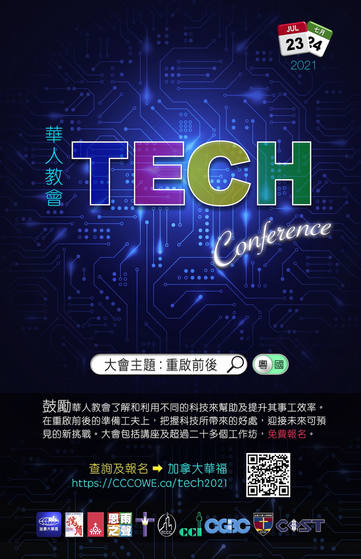鼓勵華人教會使用資訊科技作為現代工具來提升事奉效率,特別在教會重啟前後的準備上,迎接未來可預見的新挑戰。在履行主耶穌基督大使命的大前提下,大會將提供包括主題《重啓前後》的兩個座談會及24個實作性的工作坊。 歡迎大家參加,亦借此機會邀請未信主朋友從另一⻆度認識福音和教會。 |